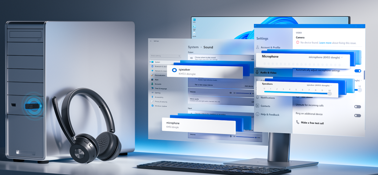 Due to the power of the advanced QCC3040 Bluetooth chip, our headset assure unwavering connections with low latency. Perfectly suited for real-time audio experiences such as music playback and video conferences. Accompanied by a Bluetooth dongle catering to computers without built-in Bluetooth capability. Compatible with popular platforms like Webex, Zoom, MS Teams, etc.