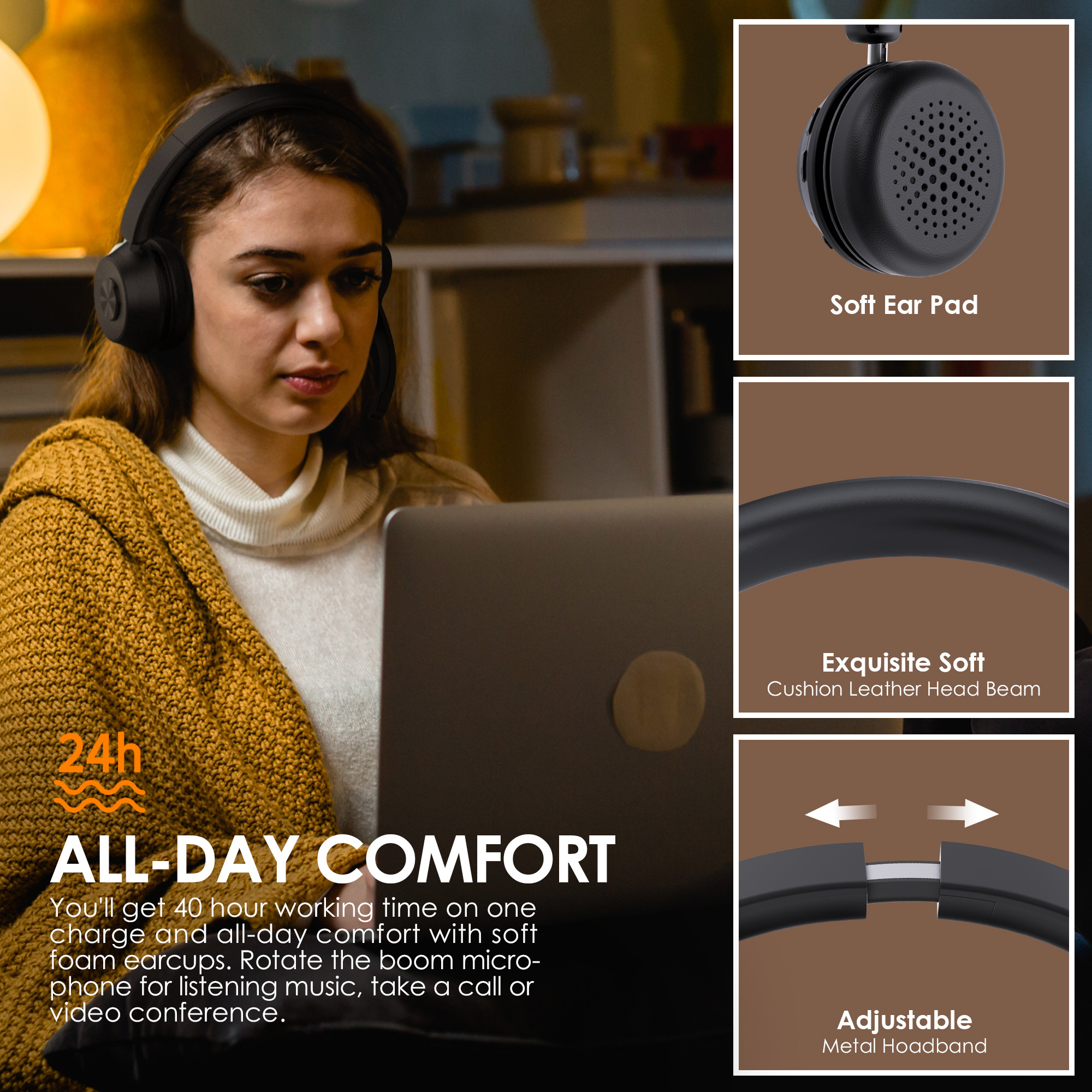 【All-Day Comfort & Hands-Free】The soft ear pad provides a comfortable fit for intensive all-day intensive use. You can adjust the headband to the most comfortable size for your head. The microphone stalk is flexible that you can easily adjust it to the perfect angle to capture your voice clearly. You can use the headset to activate Siri or voice assistant on your phone, separate buttons allow you to easily control and access for answering&rejecting calls, mute your voice or play&pause music